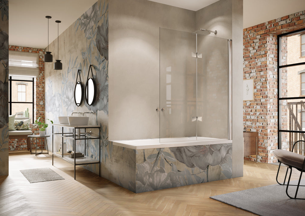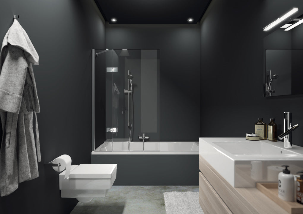 przy ścianie odchylanymi o 90 stopni do środka i na zewnątrz, na zawiasie
