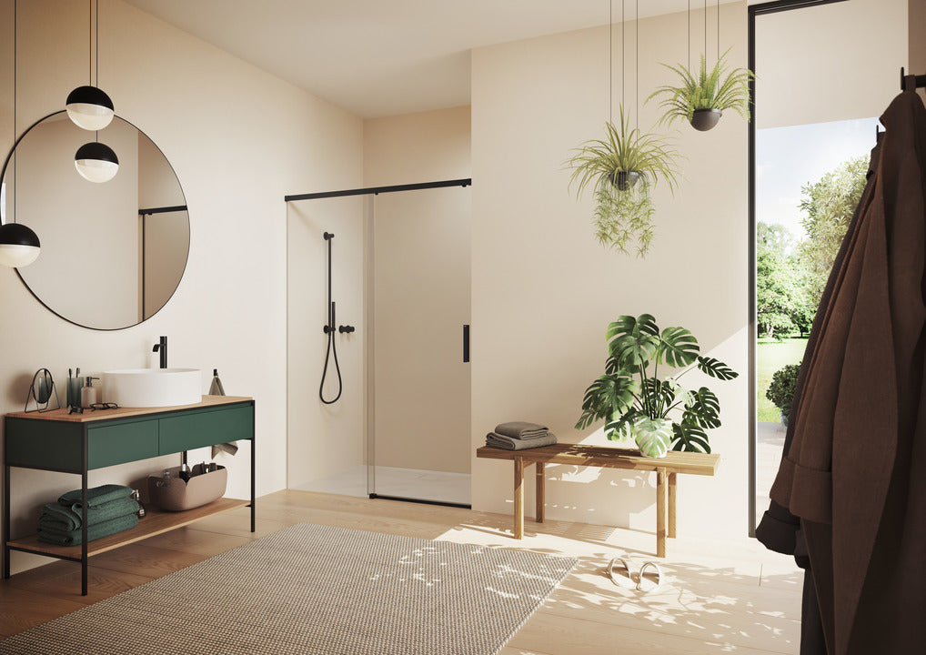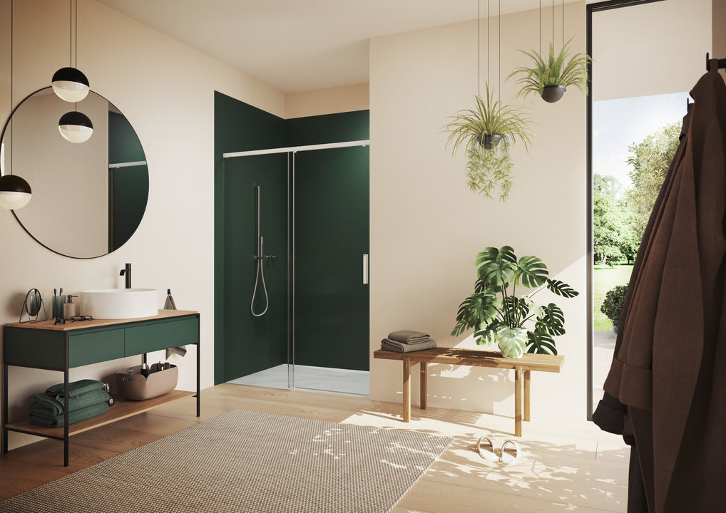 • Do montażu we wnęce, jako wejście narożnikowe lub Walk-In z elementem przesuwnym drzwi