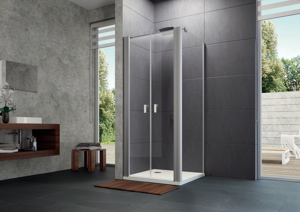 • Drzwi częściowo w ramie z dwoma skrzydłami szklanymi, otwierane do