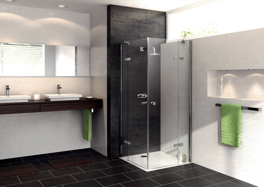 • Wejście narożnikowe częściowo w ramie z dwoma skrzydłami szklanymi,