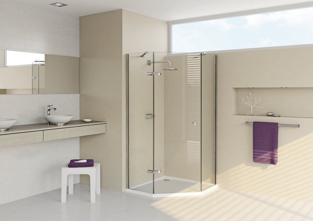 • Brodzik 5-kąt o wysokości krawędzi 40 mm i zagłębieniem obszaru prysznica 26 mm