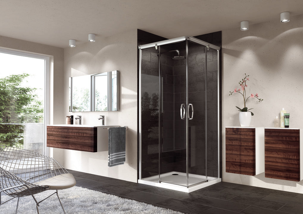 • Zasklení jednovrstvým bezpečnostním sklem tl 6 mm dle DIN EN 12150, volitelně s povrchovou úpravou HÜPPE Anti-Plaque pro snazší údržbu