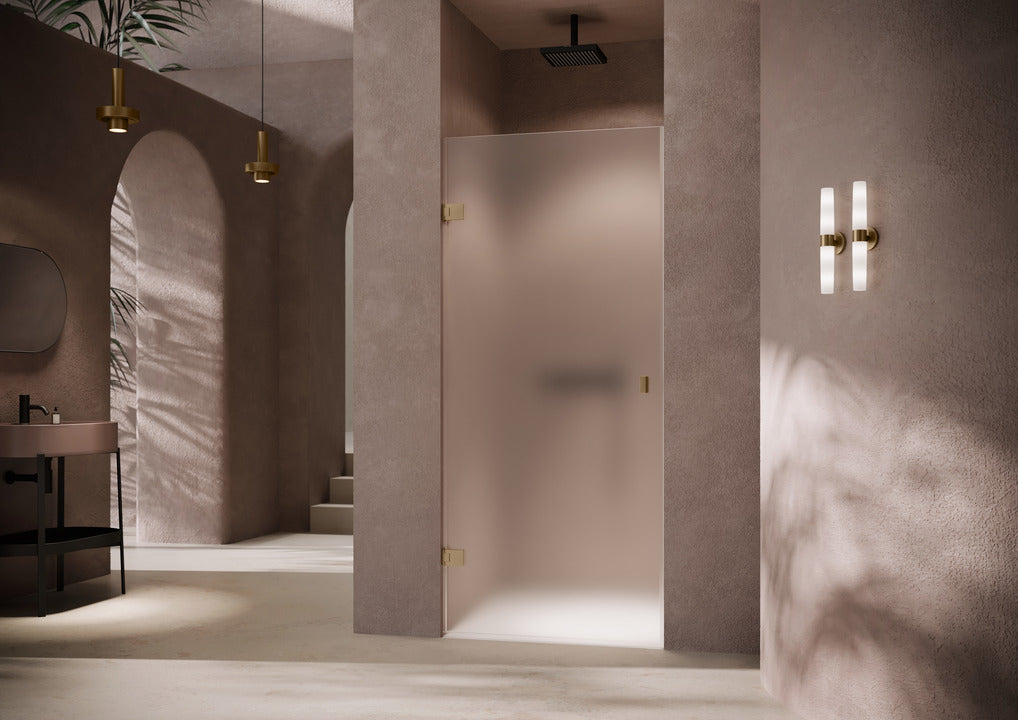 • Bezrámové dveře s jedním skleněným křídlem. Dveře se otevírají dovnitř a ven