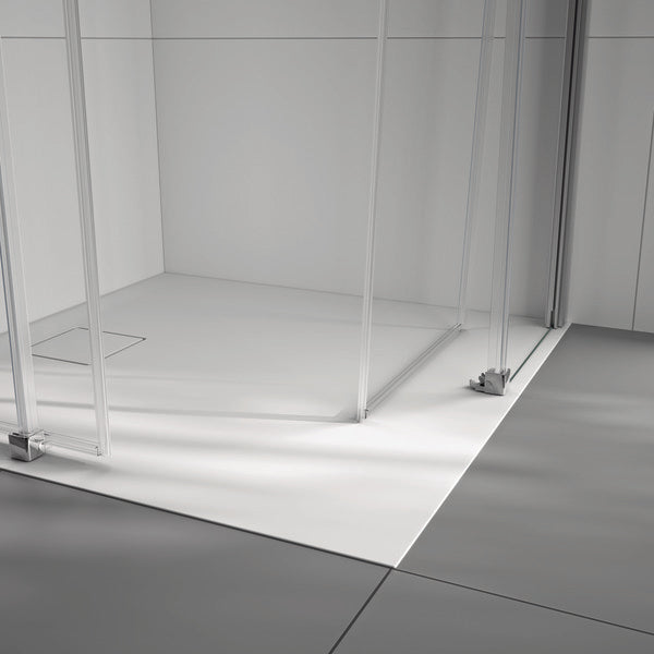 Installation on tiled surfaces and shower trays possible. Minimum floor area required for installation: 50 mm.