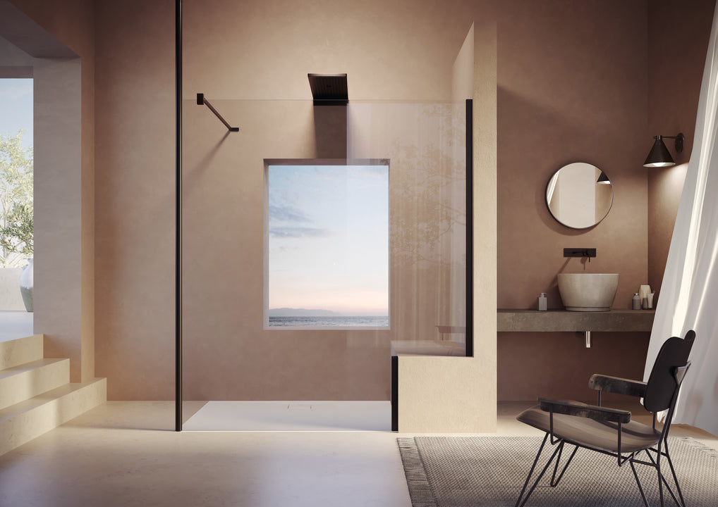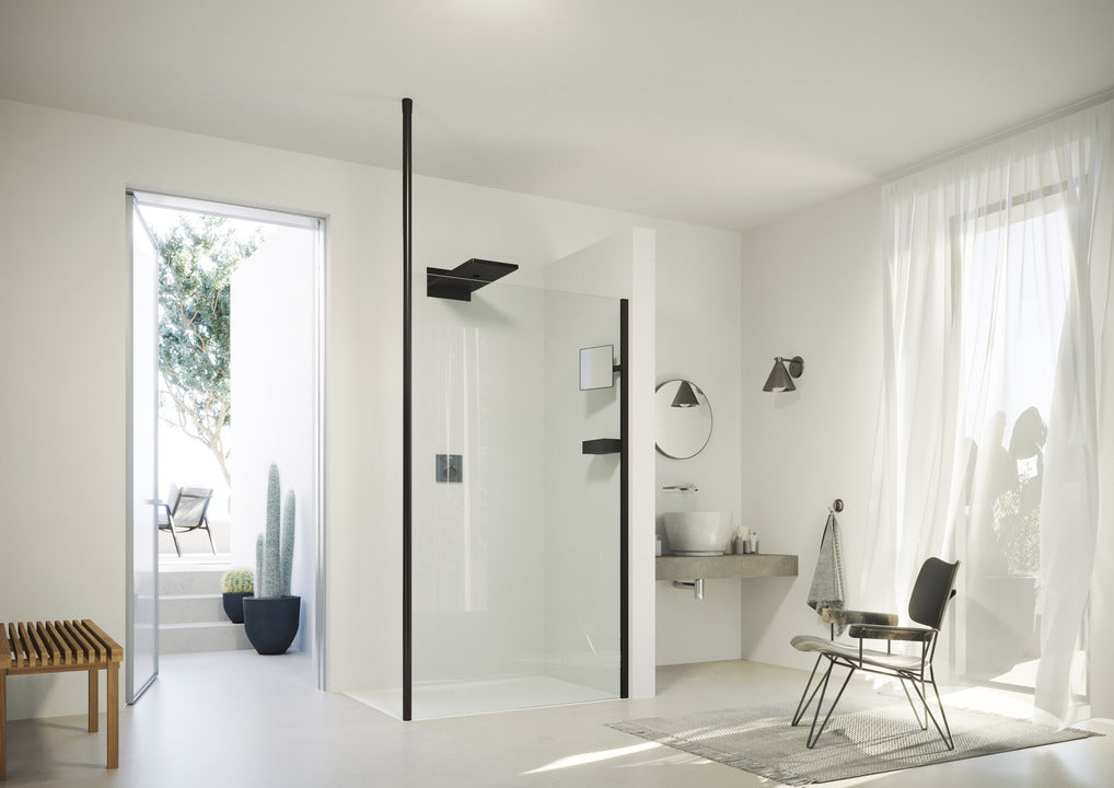 • Kabina WALK-IN ze szkła, częściowo w ramie