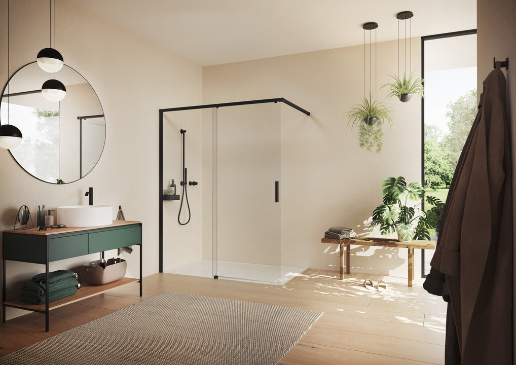 Vita pure részben keretes Walk-in tolóajtó 1 fix szegmenssel VA00